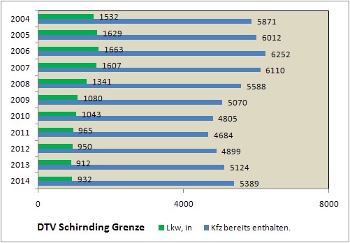 Der LKW-Verkehr ist weiter leicht rückläufig, der Gesamtverkehr 2012 (4,6%) und 2013 (ebenfalls 4,6%) hat leicht zugenommen.